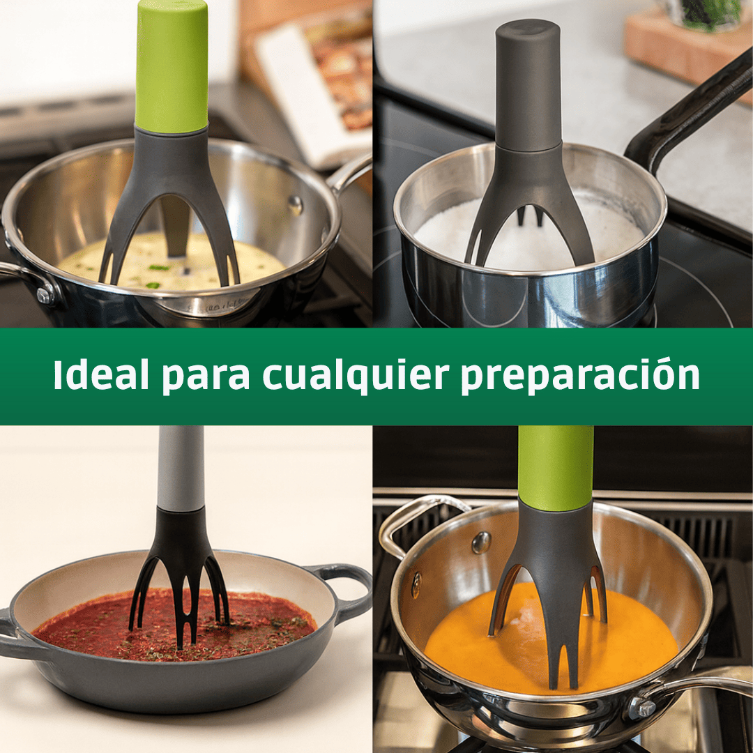 Su motor automático gira de forma constante, manteniendo tus preparaciones en movimiento mientras haces otras tareas. Cuenta con tres velocidades que se ajustan a cualquier preparación: salsas, sopas, cremas, guisos, etc.