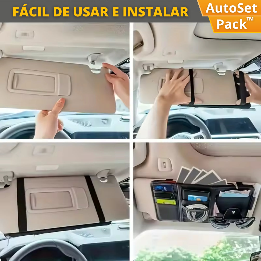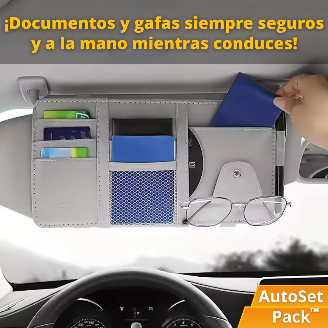 El AutoSet Pack™ incluye un organizador de asiento y un organizador de visera, perfectos para mantener tu auto ordenado y con todo a la mano.