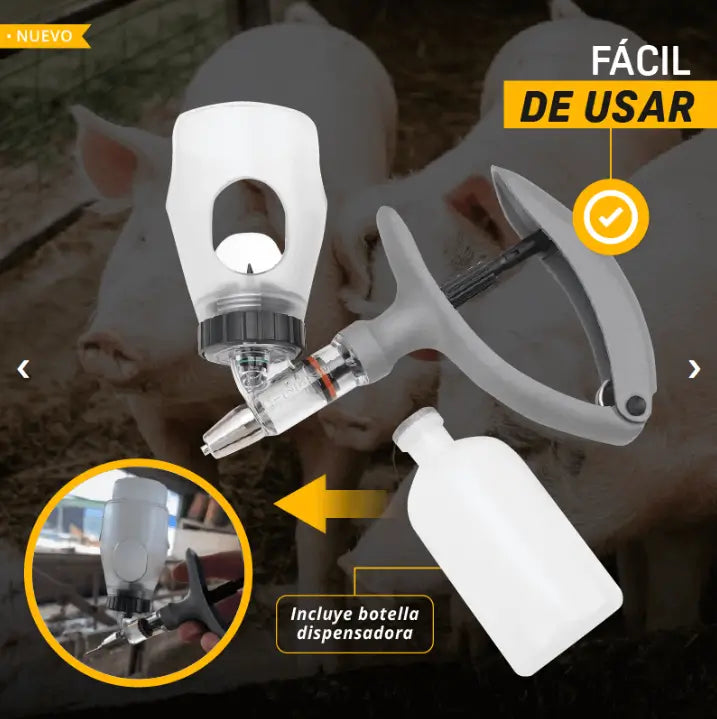 La jeringa revolucionaria permite aplicar vacunas de forma rápida y sin esfuerzo. Gracias a su diseño ergonómico, puedes administrar dosis precisas que protegen a tus animales sin perder tiempo ni energía.