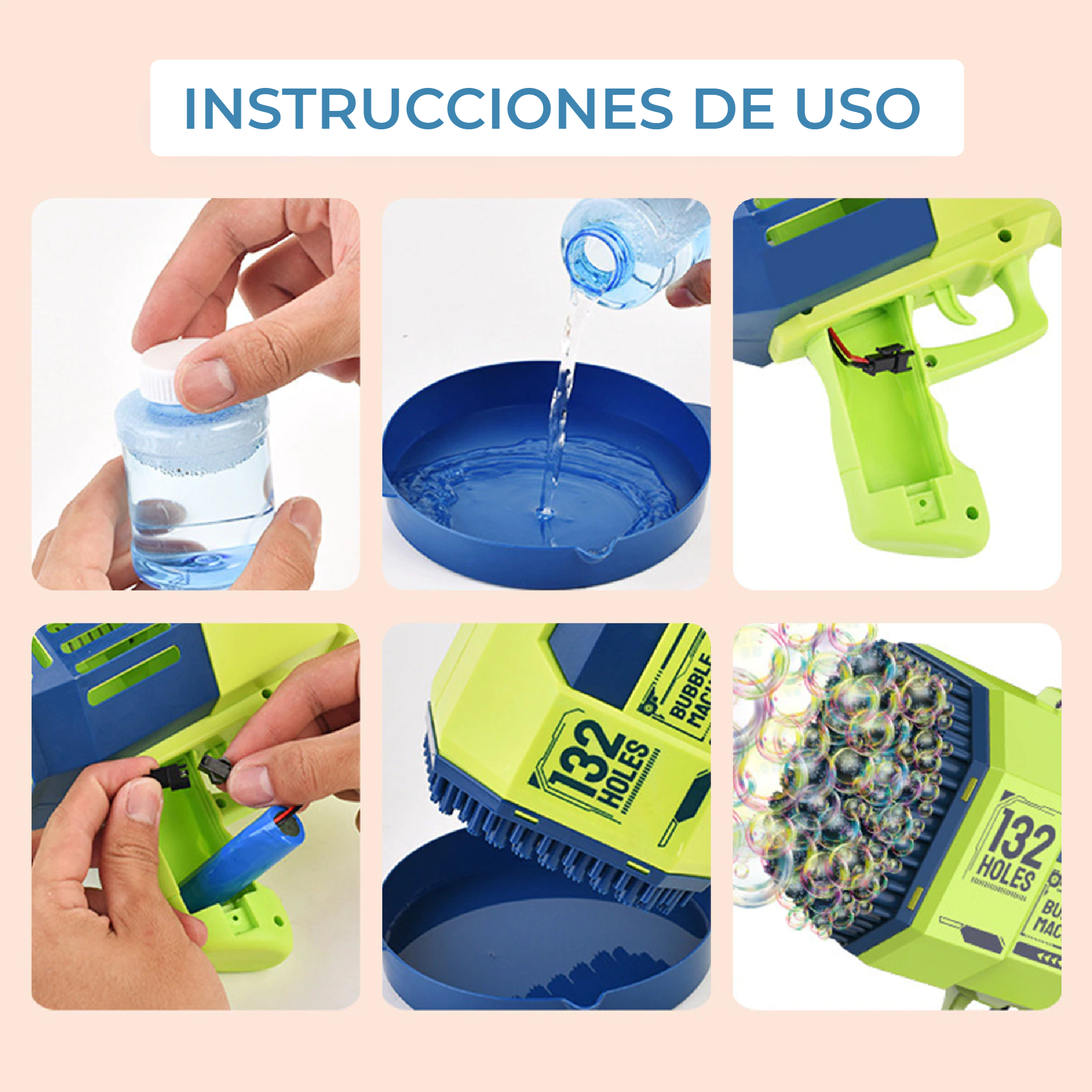 Todo listo en segundos: conecta, presiona el gatillo y miles de burbujas llenan el ambiente. Ideal para reuniones, barbacoas y encuentros sociales que buscan impacto visual inmediato y diversión segura.