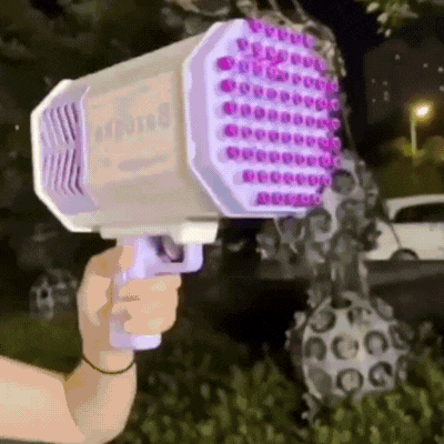 La pistola crea ambiente inmediato con miles de burbujas y luces LED; perfecto para fotos, juegos infantiles y momentos informales entre amigos.