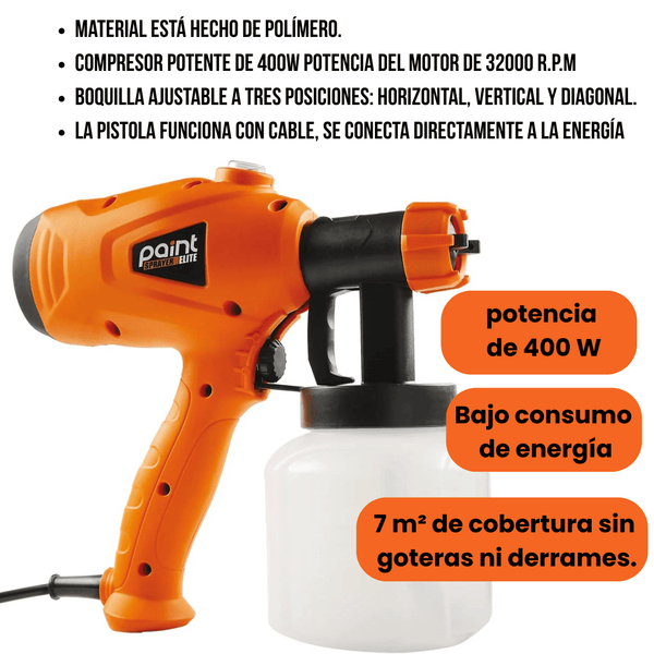 La pistola proporciona pulverización constante y ajuste fácil, permitiendo acabados lisos en paredes, muebles y puertas para transformaciones rápidas y visibles.