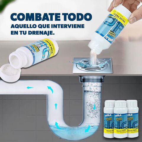 A diferencia de otros, ofrece polvo de acción rápida, segura para PVC y cobre, elimina grasa y cabello eficazmente y evita visitas al plomero, entregando resultados comprobados desde la primera aplicación.